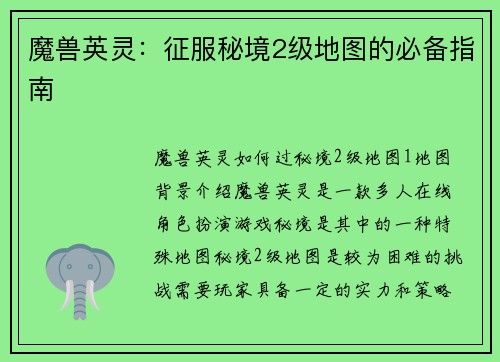 介绍魔兽世界宠物装备任务 魔兽世界是一款非常受欢迎的在线角色扮演游戏,宠物是游戏中非常重要的一部分。宠物装备任务是玩家可以通过完成一系列任务来为自己的宠物获取装备的方式之一。宠物装备可以提升宠物的属性...